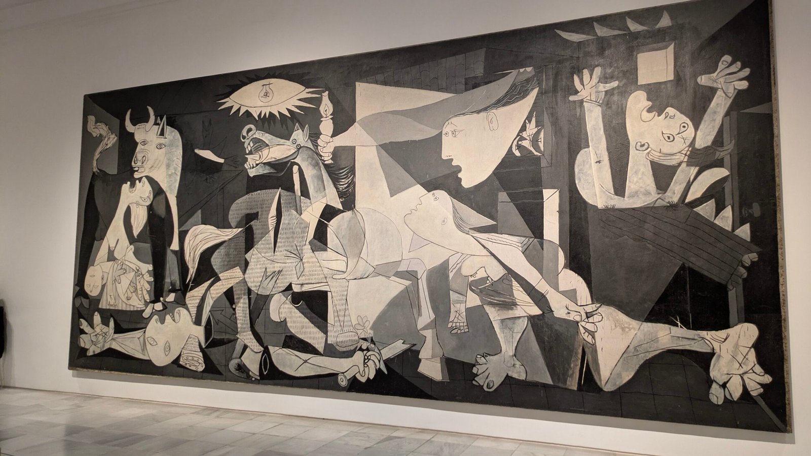 El icónico cuadro "Guernica" de Picasso, símbolo de la resistencia antifascista durante la guerra civil y posiblemente la obra más emblemática del arte del siglo XX.